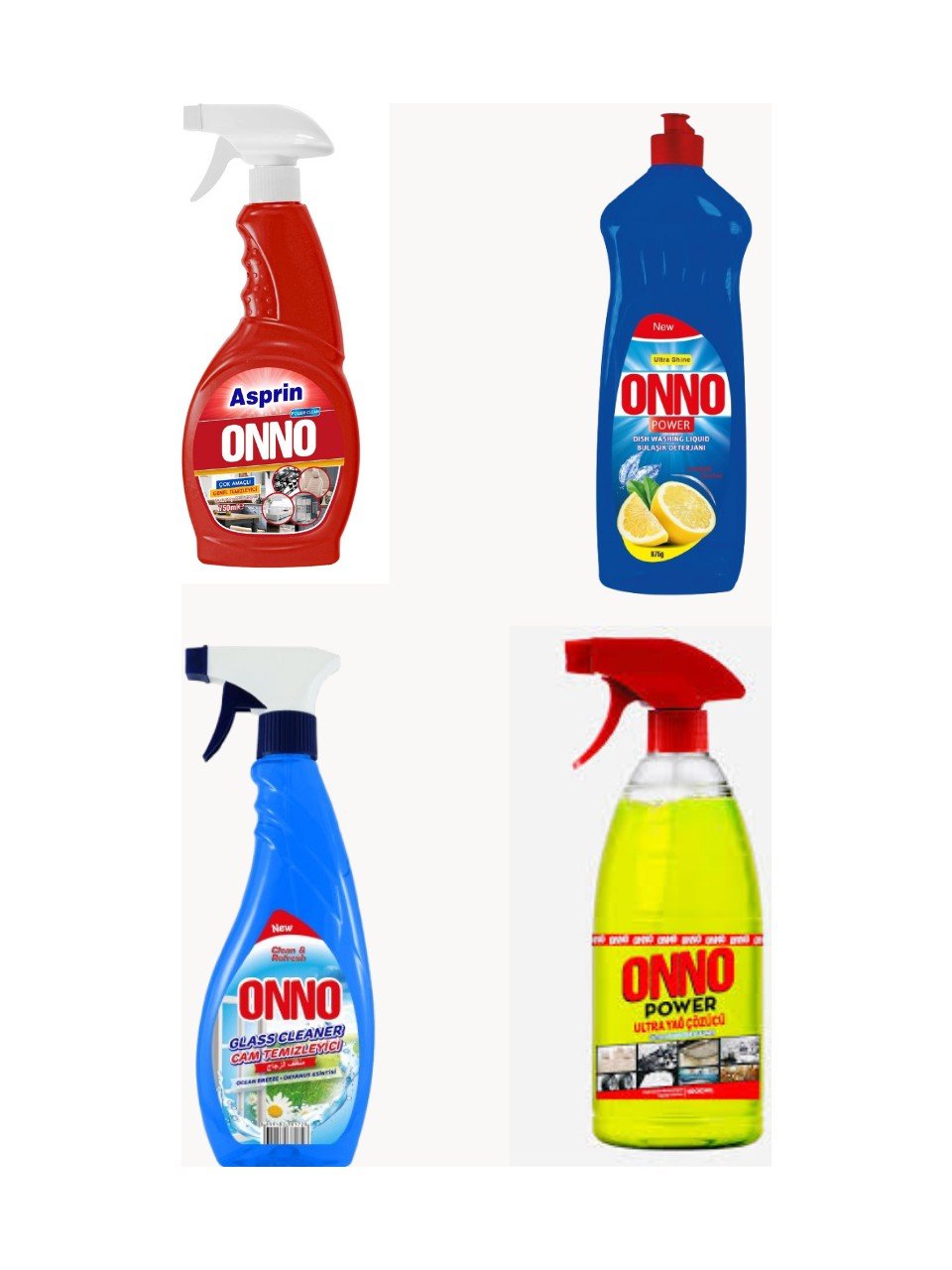 Onno Temizlik Seti ( Yağ Çözücü – Cam Temizleyici -Bulaşık Deterjanı – Asprin )